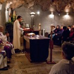 The Heralds in Houston, TX held a Lenten devotion of the Stations of the Cross on Saturday, March 13, 2010 at Our Lady of Lourdes parish in Houston. The parish has a beautiful replica of the grotto of Lourdes and the gardens have a life-size stations of the cross. Afterwards, the Holy Eucharist was celebrated in the grotto chapel.