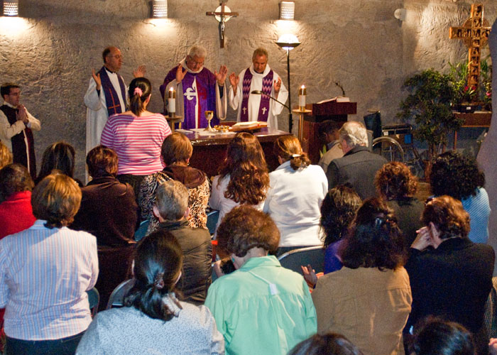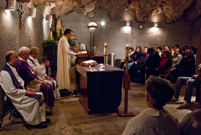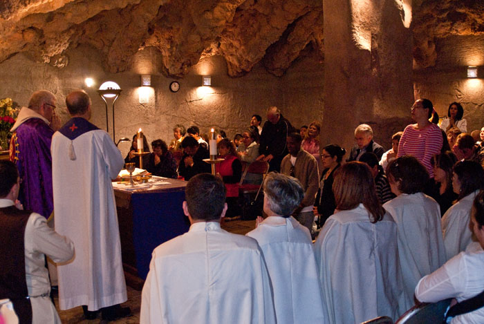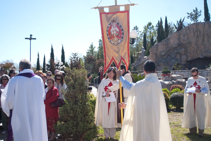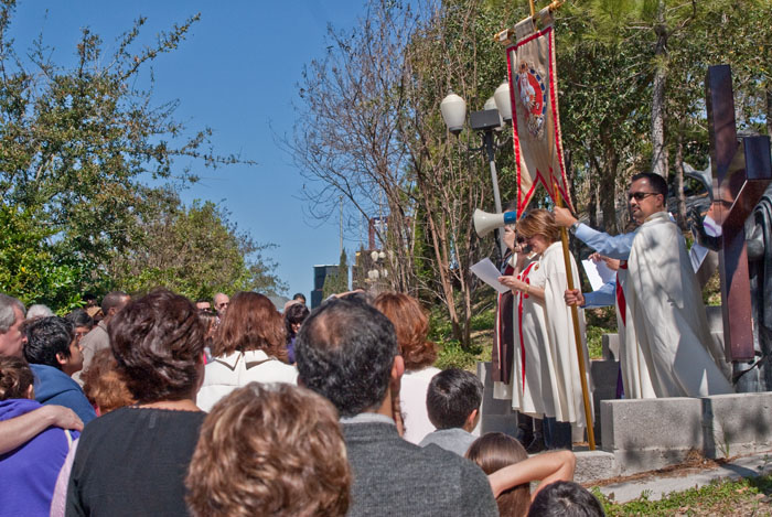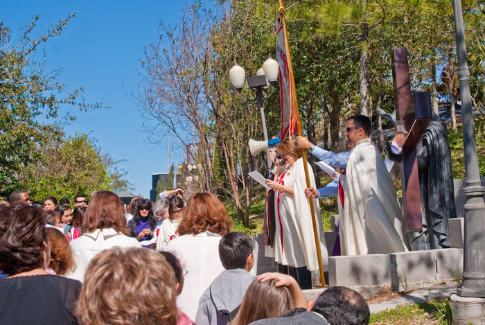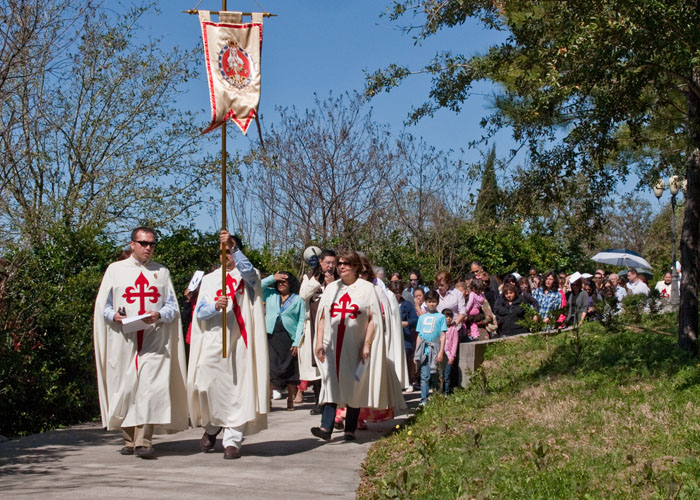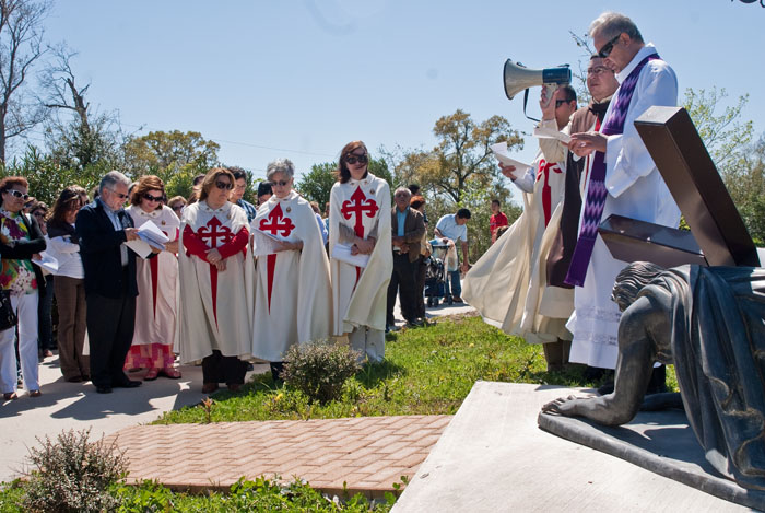 The Heralds in Houston, TX held a Lenten devotion of the Stations of the Cross on Saturday, March 13, 2010 at Our Lady of Lourdes parish in Houston. The parish has a beautiful replica of the grotto of Lourdes and the gardens have a life-size stations of the cross. Afterwards, the Holy Eucharist was celebrated in the grotto chapel.